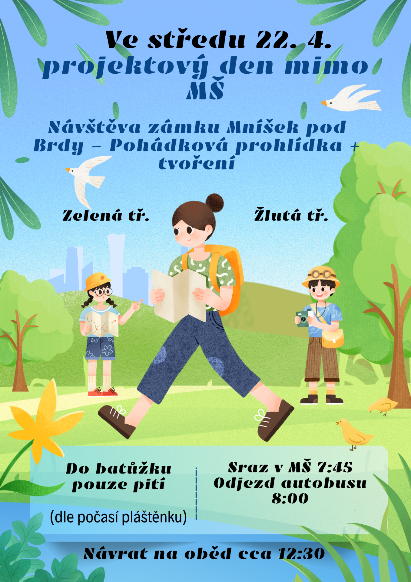 Sraz je v MŠ v 7:45, odjezd autobusu v 8:00.